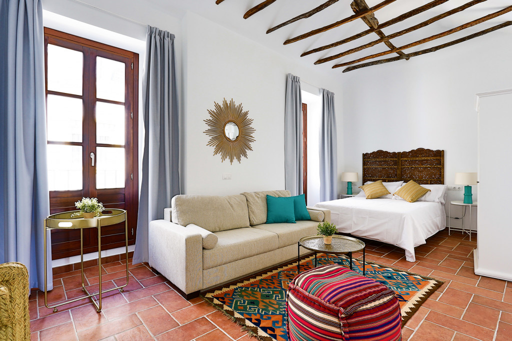 Hoy tenemos en el blog uno de nuestros últimos proyectos terminados, que es un edificio de apartamentos para alquiler turístico en Córdoba. Ya hemos hecho otros edificios de este tipo para la empresa Urban Vida, pero este edificio era un reto precisamente por donde estaba situado, junto al Alcazar de los Reyes en pleno centro histórico. Cuando empezamos a trabajar para Urban Vida nos contaron su concepto y creamos una imagen global para que todos los edificios tuvieran una decoración con un mismo hilo conductor: espacios modernos, acogedores con colores vibrantes donde apeteciera estar.